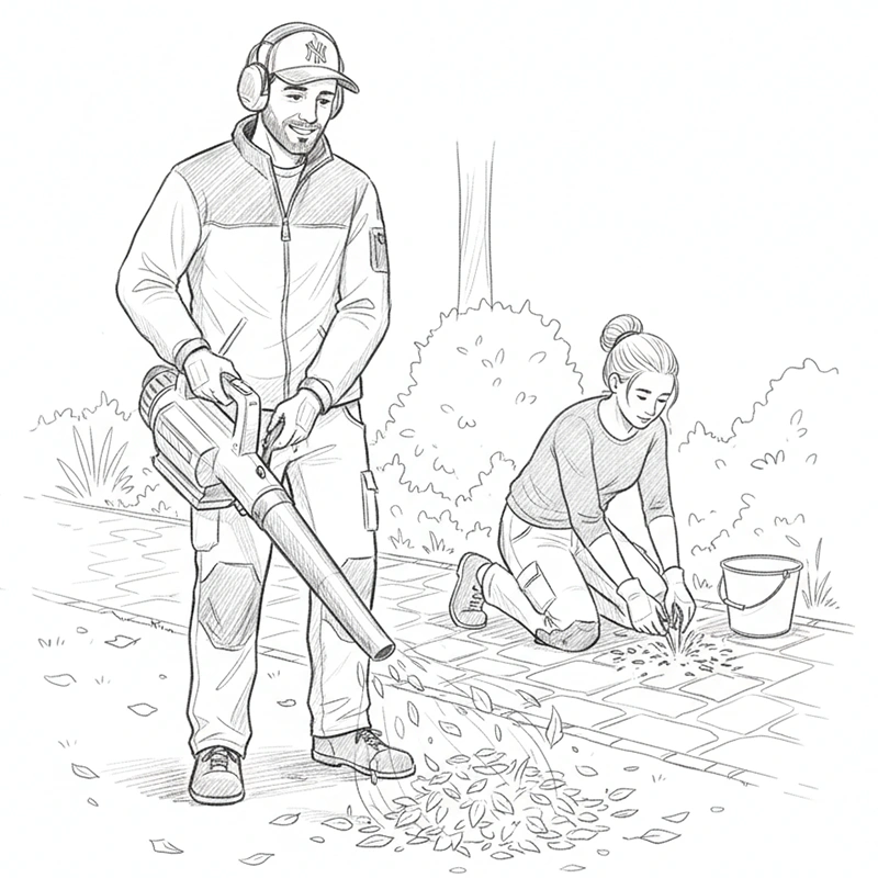 Wir schützen Pflanzen, Möbel und Fassaden – und arbeiten kontrolliert Schritt für Schritt.